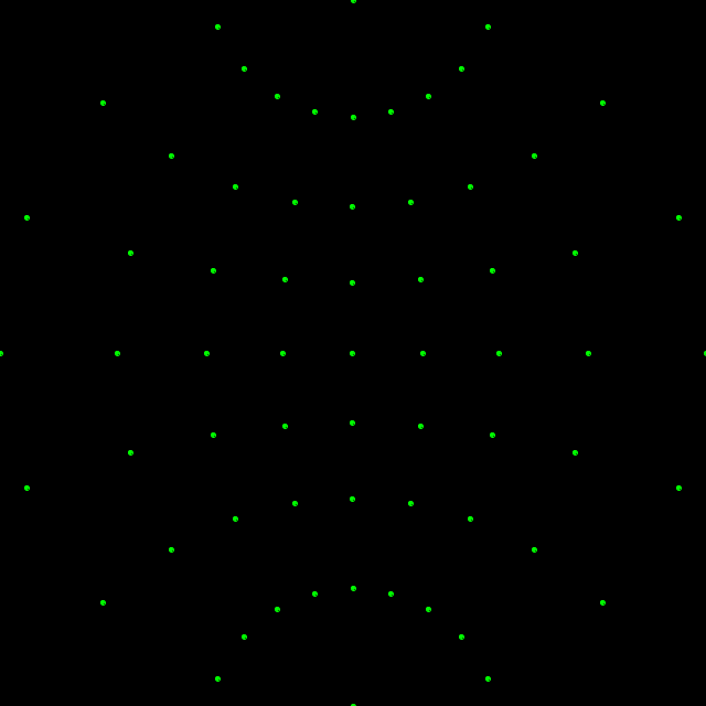 Weil auf einem 640×640-Schirm ein Punkt recht klein ist, wird stattdessen ein kleiner Kreis mit dem circle()-Befehl gemalt. Dieser Befehl kümmert sich vorerst auch darum, dass Punkte links/rechts bzw. ober-/unterhalb des Schirms nicht gezeichnet werden. Um dieses Clipping müssen wir uns also (noch) nicht selber kümmern.