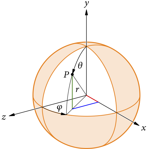 Um eine Kugel zu rastern, können wir auf die Kugelkoordinaten (s. Abb. 2) zurückgreifen, die man aus der Geographie als Breite () bzw. Länge (
