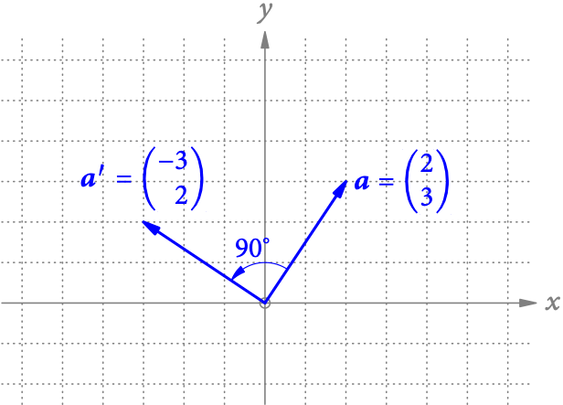 Abb. 2 zeigt die Drehung 90° um den Ursprung noch einmal für die entsprechenden (Orts)vektoren.