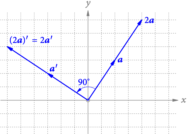 (s. Abb. 3). Es ist also egal, ob wir den Vektor vorher mit einer Zahl multiplizieren und dann drehen, oder ob wir zuerst drehen und dann mit dieser Zahl multiplizieren.