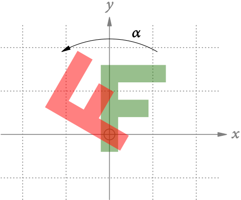 Abb. 8 zeigt die Rotation des grünen Fs 60° um den Ursprung. Die entsprechende Rotationsmatrix ist