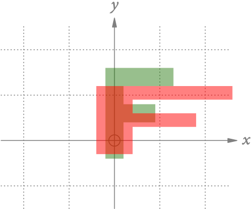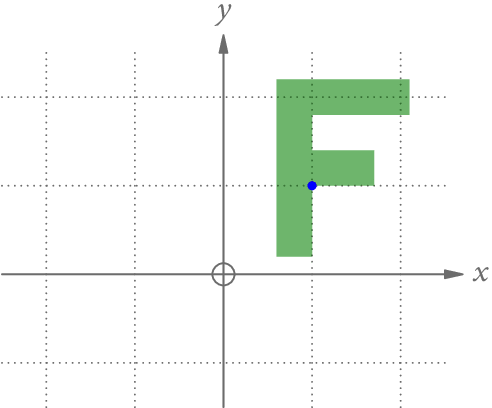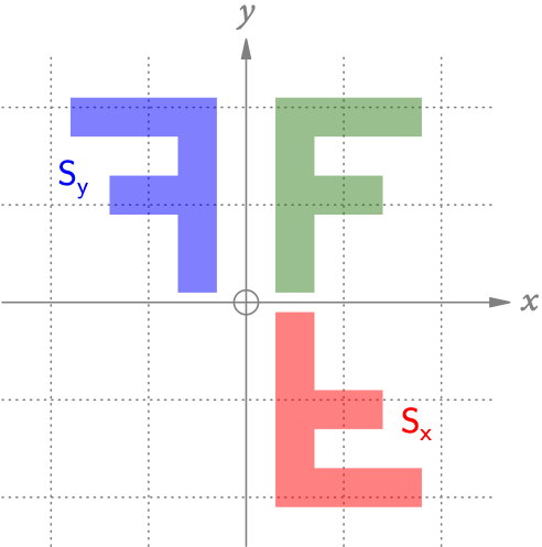 Abb. 6 zeigt die Spiegelung der Eckpunkte des grünen Fs an der x– und der y-Achse.